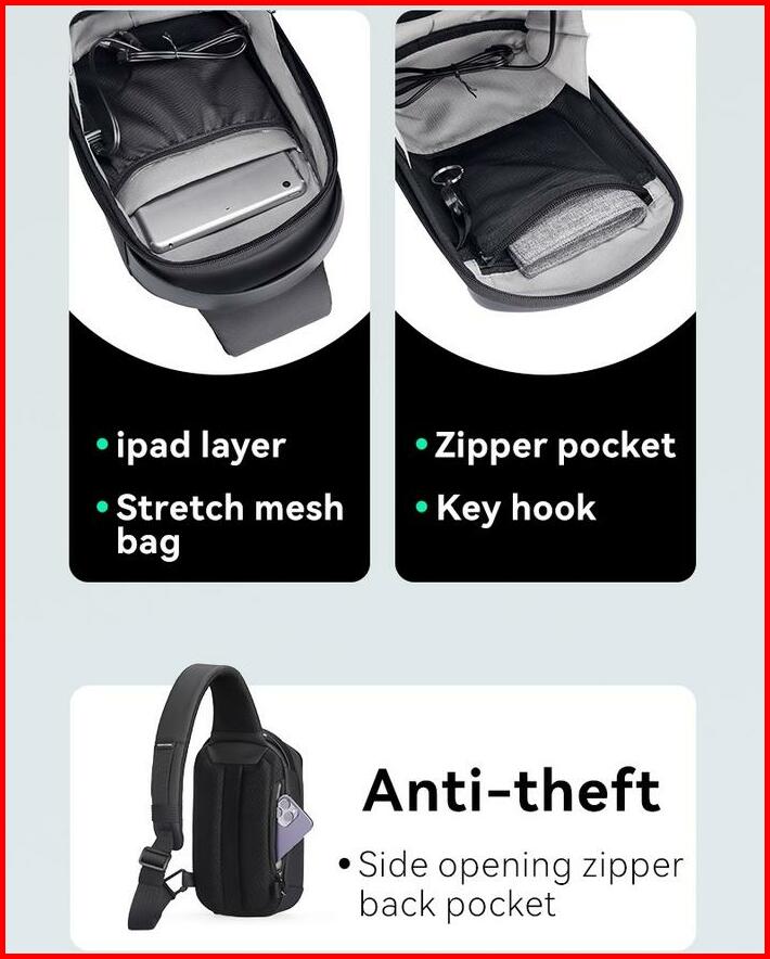 Mark Ryden Mr3998 Tas Selempang Pria Crossbody Sling Bag Usb Hitam Cowok