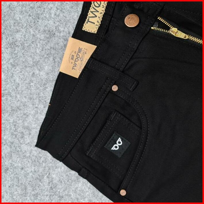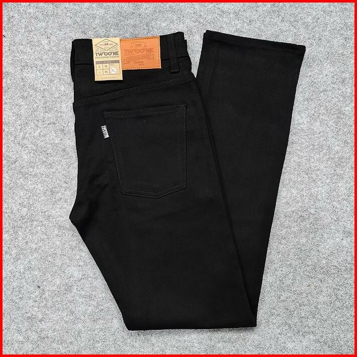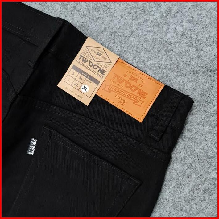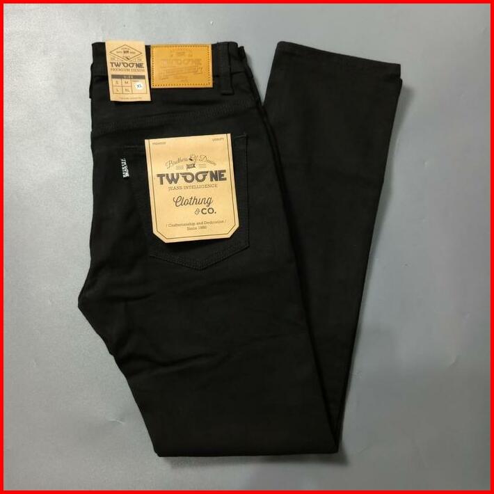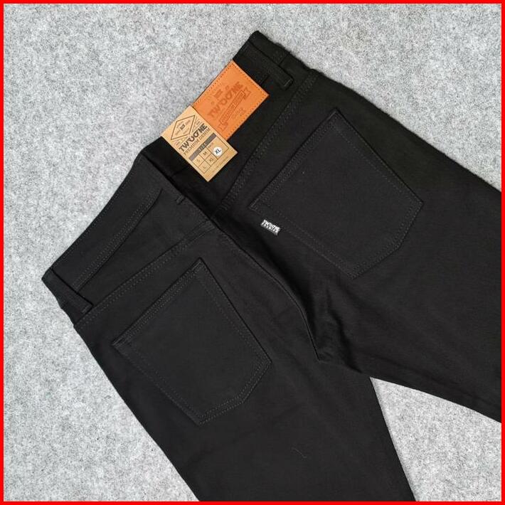 Two One Celana Jeans Pria Panjang Slim Fit Denim Stretch Elastis Hitam Polos