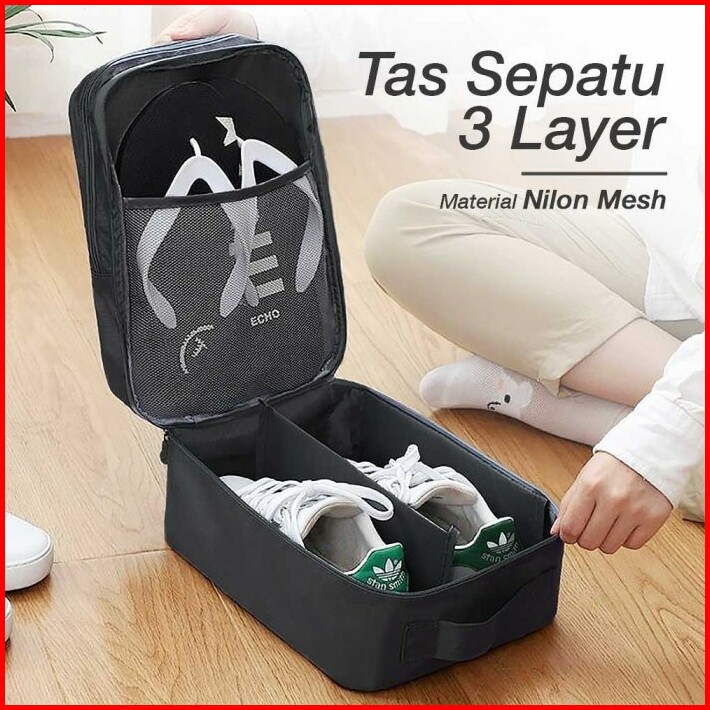 Tas Sepatu Basket Sandal Olahraga 3 Layer Shoes Bag Travel Organizer