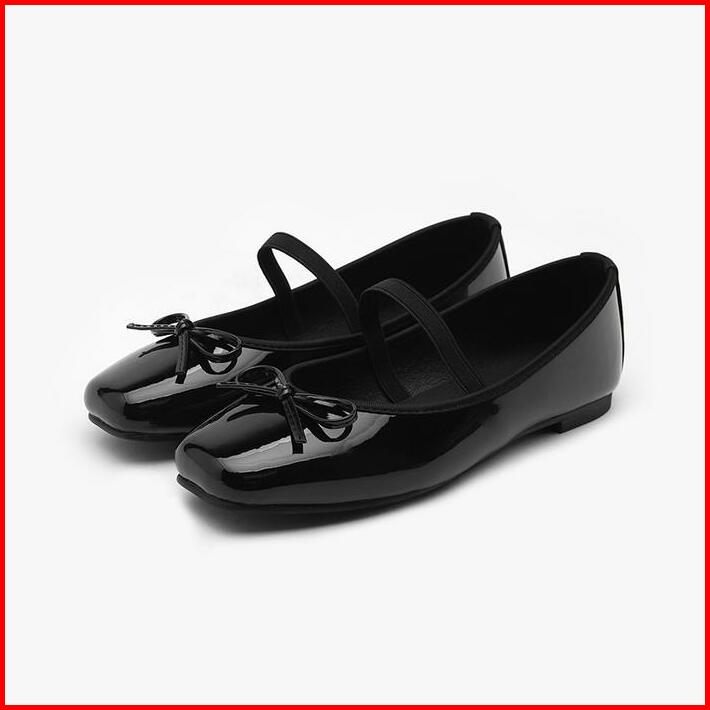 Sepatu Pesta Flat Shoes Wanita Tali Aksen Pita Sepatu Kerja Wanita Flat Shoes Hitam Karet