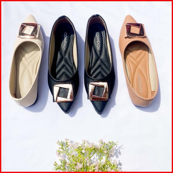 Connexion Alexa Flatshoes Wanita Jajar Genjang Terbaru Kekinian Shoes Flat Wanita Hitam