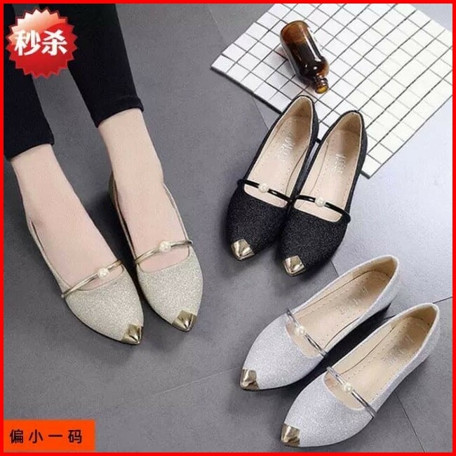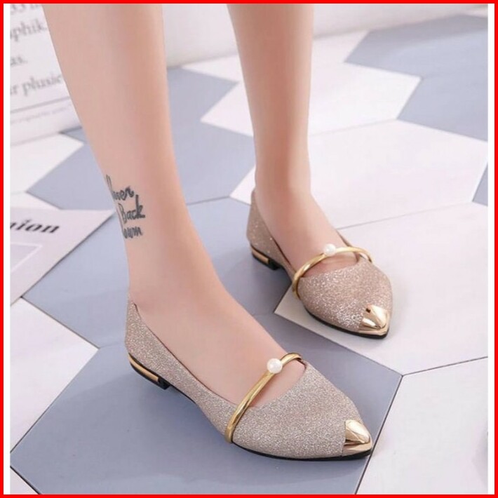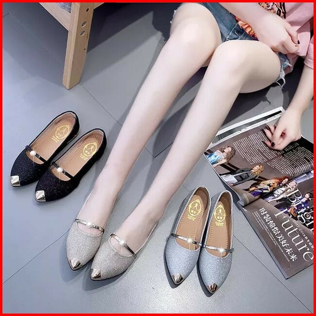 Sepatu Wanita Premium Glitter Flat Shoes Sd21 Pesta Kerja Kantor Formal Kasual Tanpa Hak Modis Elegan Trendy Kekinian Mo