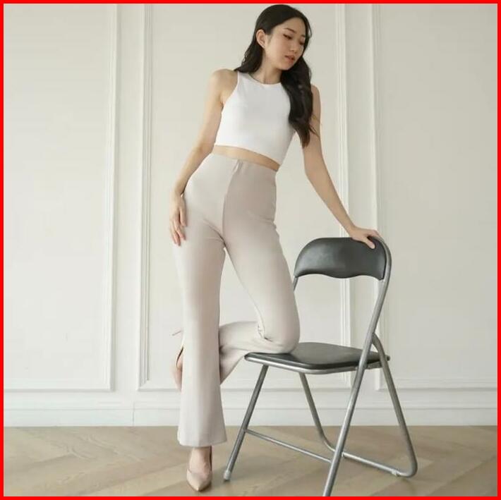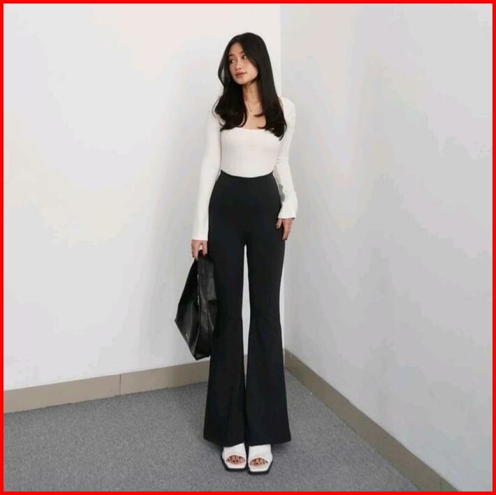 Celana Flare Pants Semi Cutbray Highwaist Super Jumbo Wanita Dewasa Loose Bawahan Kerja Hitam