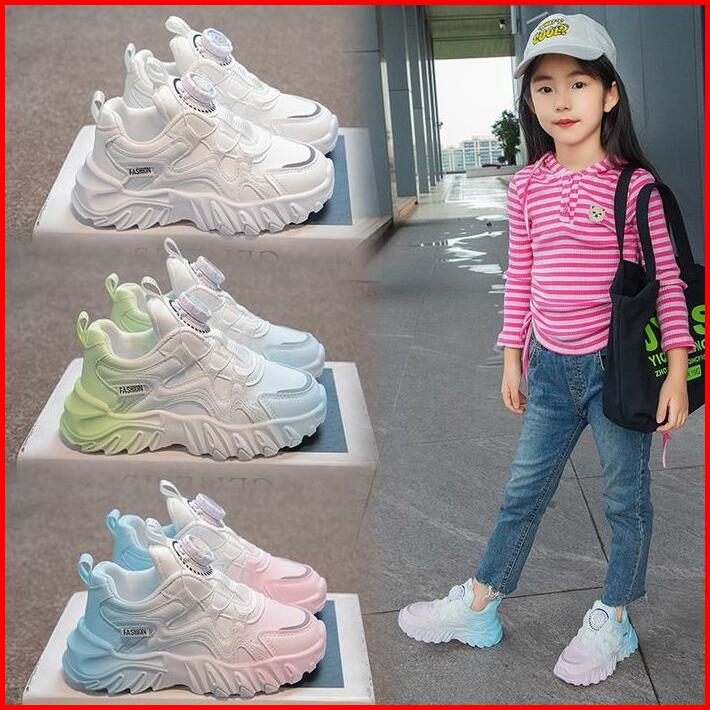 Sepatu Sneakers Anak Perempuan Laki Laki Full Collor Mode Tali Putar Terbaru Kece Abizz Size 26-37 Free Dus