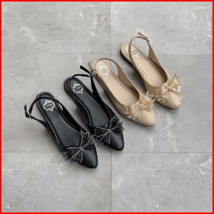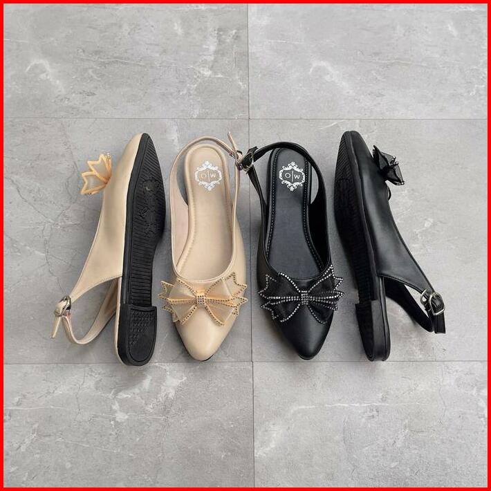 Faduzzi Sepatu Kerja Flatshoes Wanita Lucia Sol Karet Pansus Tali Belakang Sepatu Sandal Tali Belakang Adelia Kantoran B