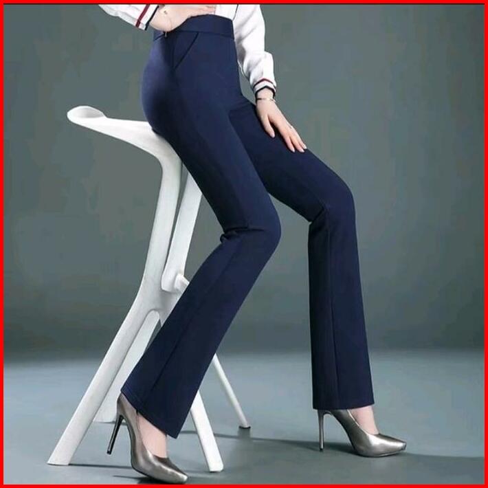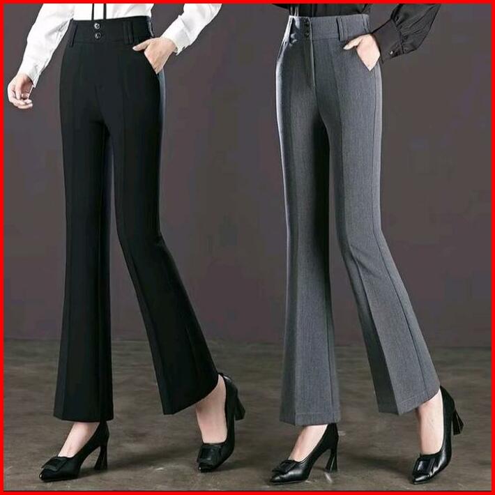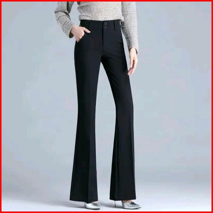 Celana Cutbray Wanita Kerja Kantoran Bahan Semi Woll Wanita Formal Resleting Saku Aktif Hitam Bawahan Panjang Kancing Sa