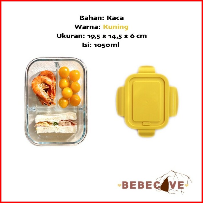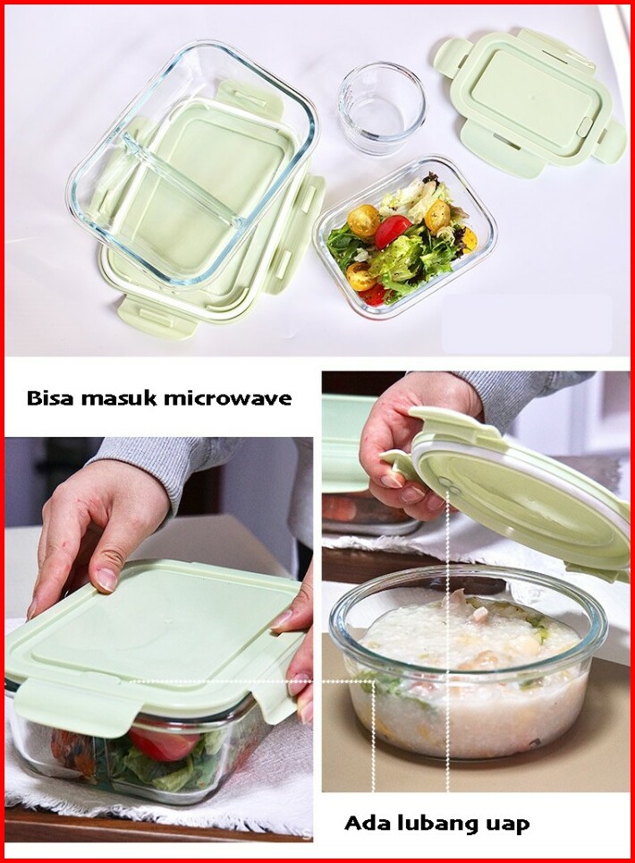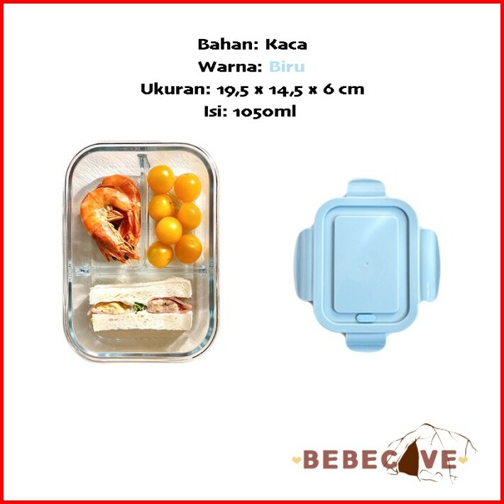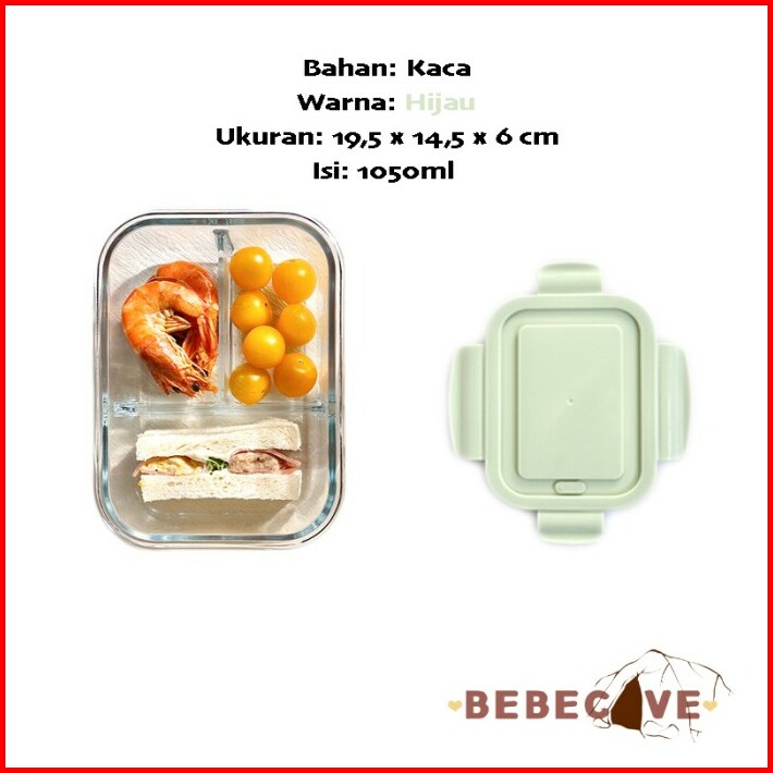 Bekal Kaca Sekat 3 Kotak Tempat Makan