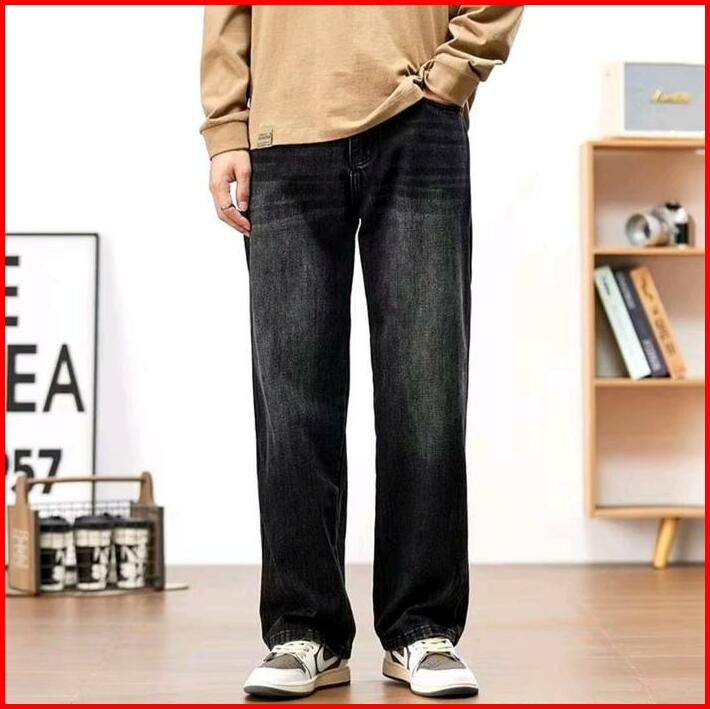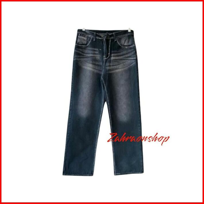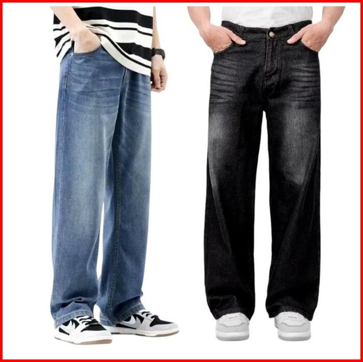 Celana Jeans Wide Leg Gombrong Loose Oversize Skena Black Wisker Celana Basic Vintage Baggy Pria Panjang