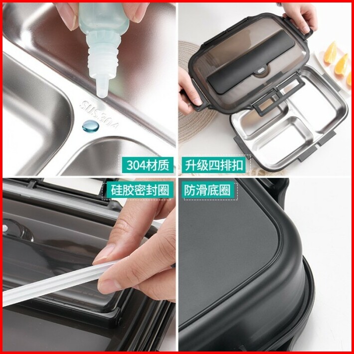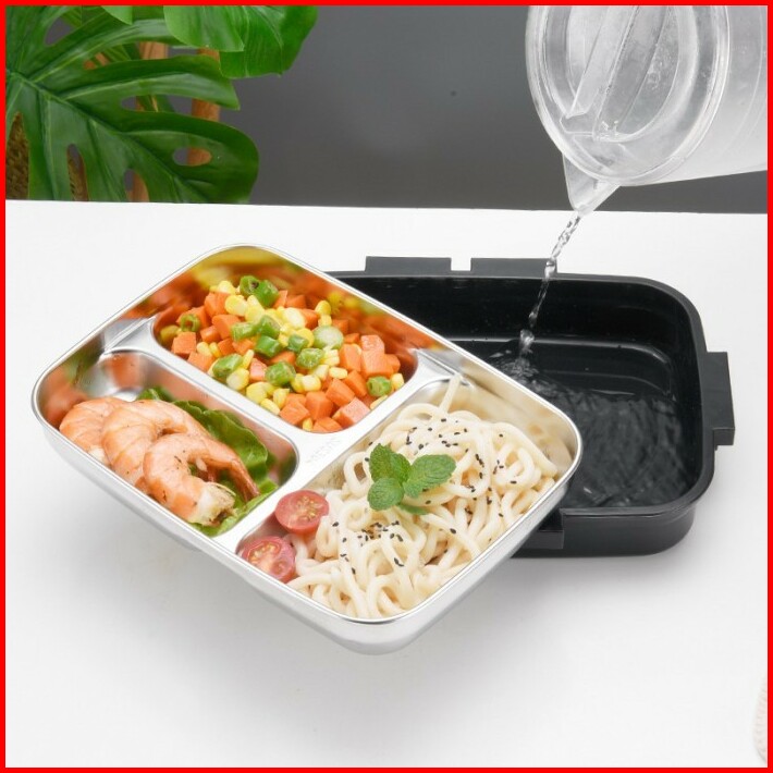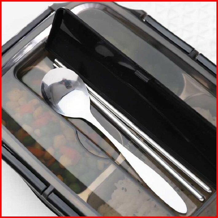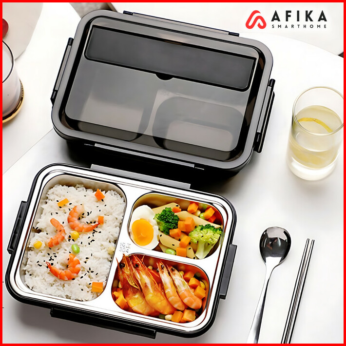 Lunch Box Kotak Bekal Makan Bento Stainless 3 Grid Sendok Dan Sumpit