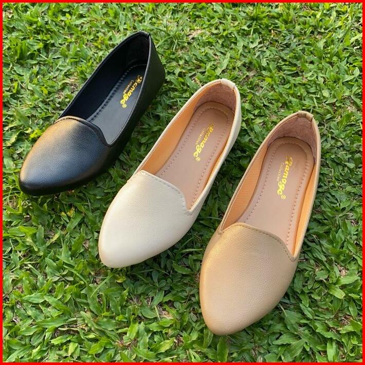Big Size 41 44 Flat Shoes Sepatu Wanita Polos Elegant Sol Karet Lentur Hs-02