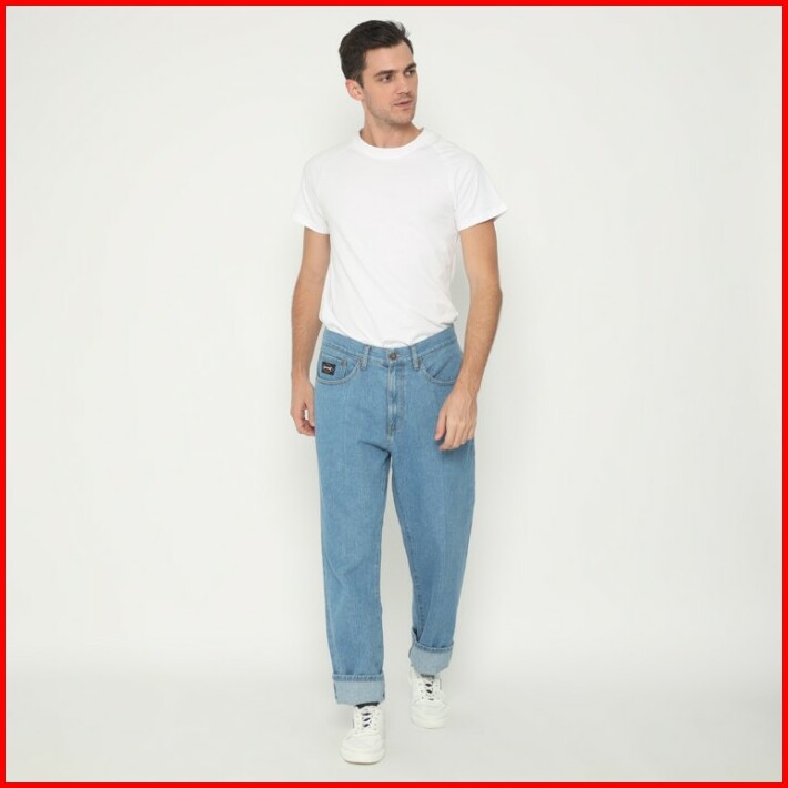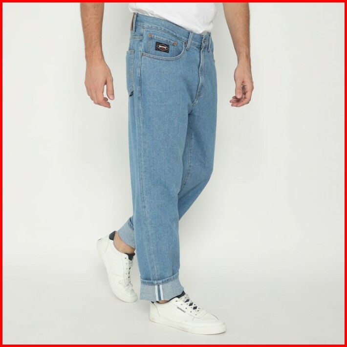 Papperdine 307 Bleach Loose Fit Selvedge Celana Panjang Jeans Pria