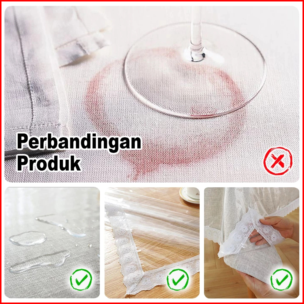 Taplak Meja Makan Transparan List Samping Alas Meja Bening Ruang Tamu Pvc Tebal Anti Air