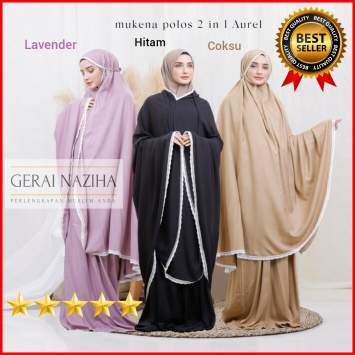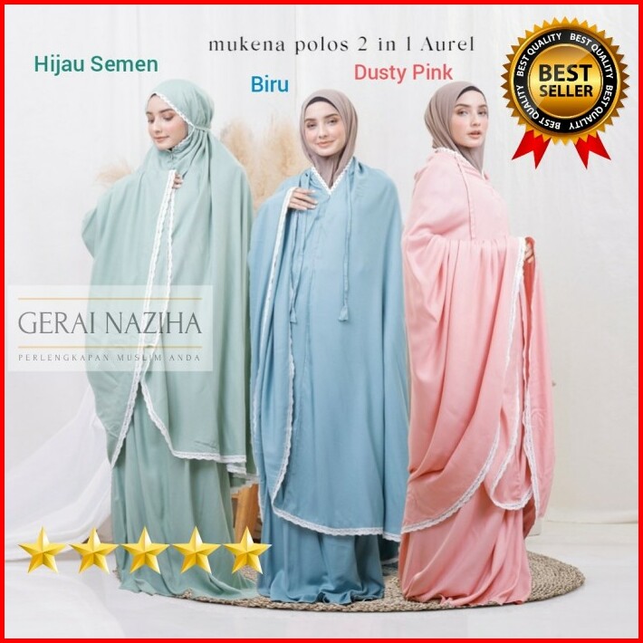 Mukena Dewasa Katun Rayon Aurel Polos 2in1 Travel Khadijah Traveling