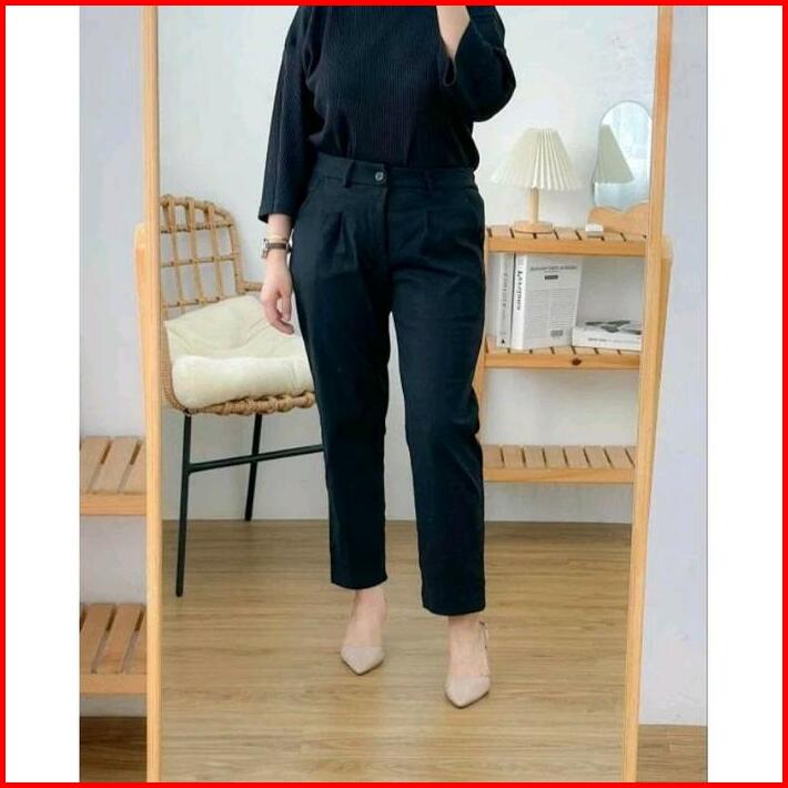Celana Kerja Wanita Chino Panjang Mode Kancing Resleting Slim Fit Formal Bahan Twill Katun Combed Melar Untuk Ke Kantor