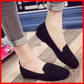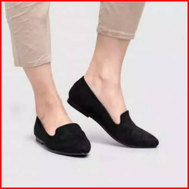 Sepatu Hitam Flat Shoes Wanita Fashion Polos Daff02 Kerja Kasual Jalan