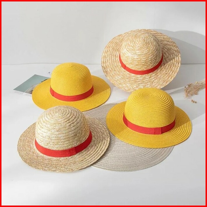 Topi Jerami Luffy One Piece Anak Dewasa Topi Pantai Topi Kostum Cosplay Pria Wanita