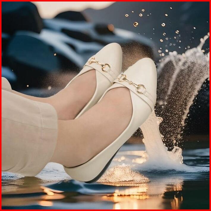 Sepatu Flat Shoes Wanita Nuzukaye Kerja Pantofel Wanita Hitam Kasual Perempuan Bahan Sintetis Bentuk Jari Kaki Runcing S
