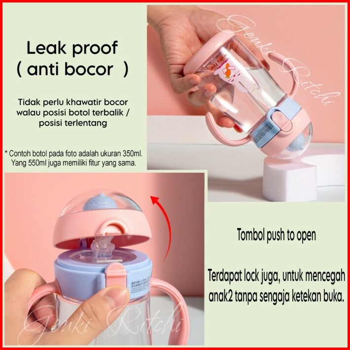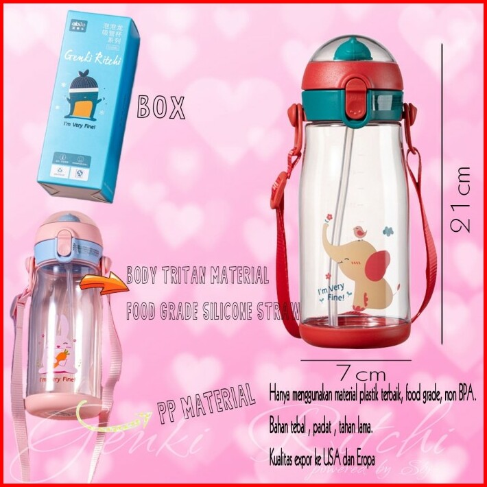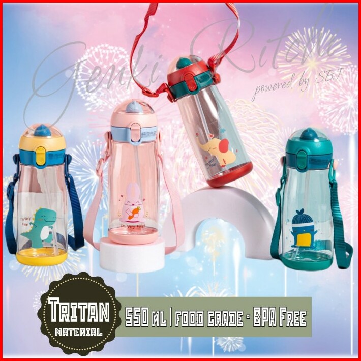 Botol Minum Tritan Bpa Free Bubble Pop 550ml Dengan Sedotan Tali