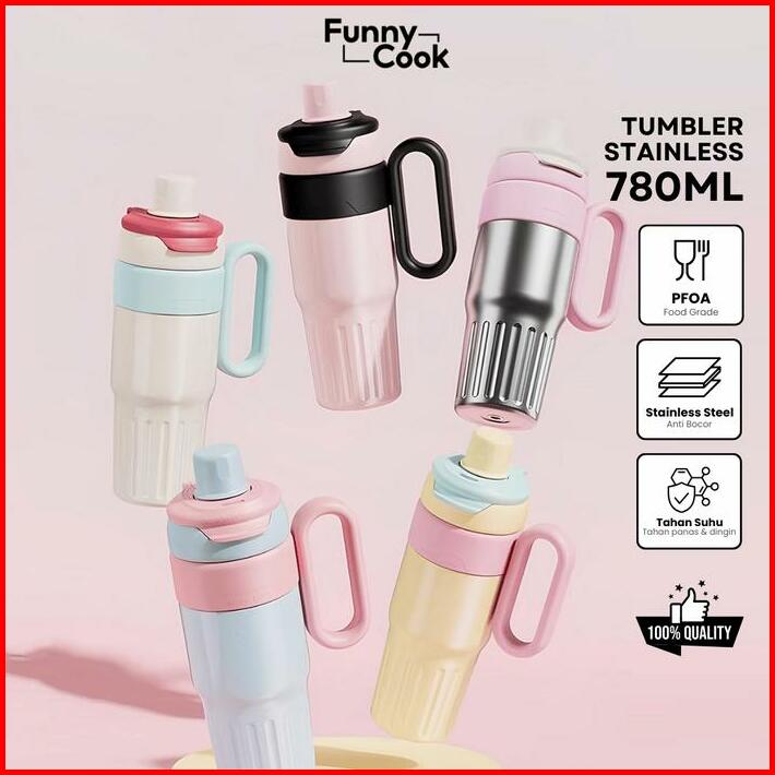Funnycook Tumbler Stainless Steel Gemoy Ukuran 780ml Botol Minum Tahan Panas Dan Dingin Aesthetic Bottles Water Kitchenw