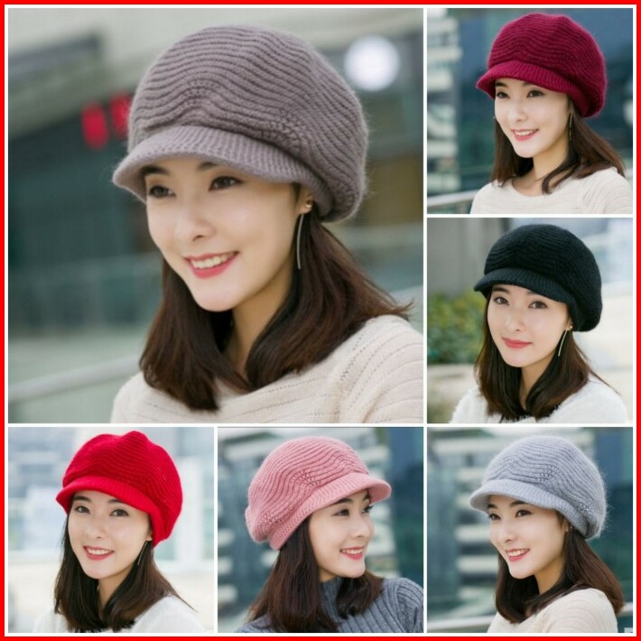Topi Rajut Korea Wanita Berbahan Wol Nyaman Saat Dikenakan