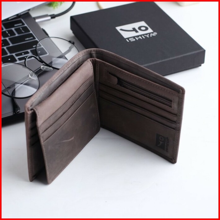 Dompet Pria Pendek Kulit Asli Fbi Vintage Ishiya Crazy Horse -keshoo-