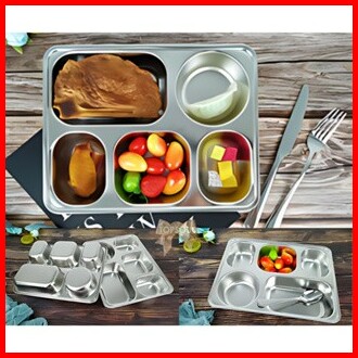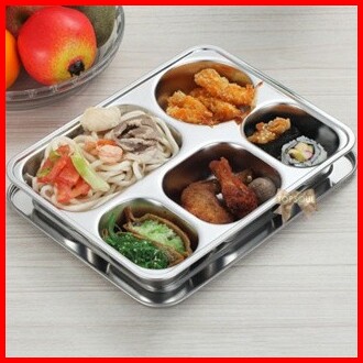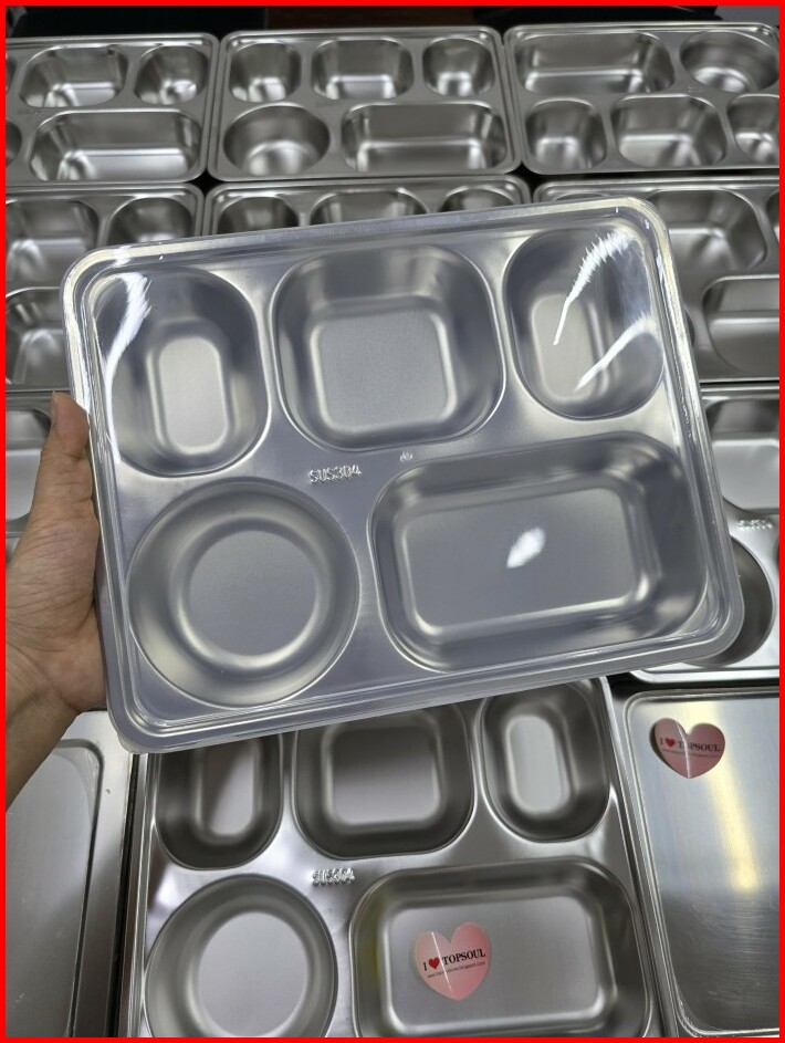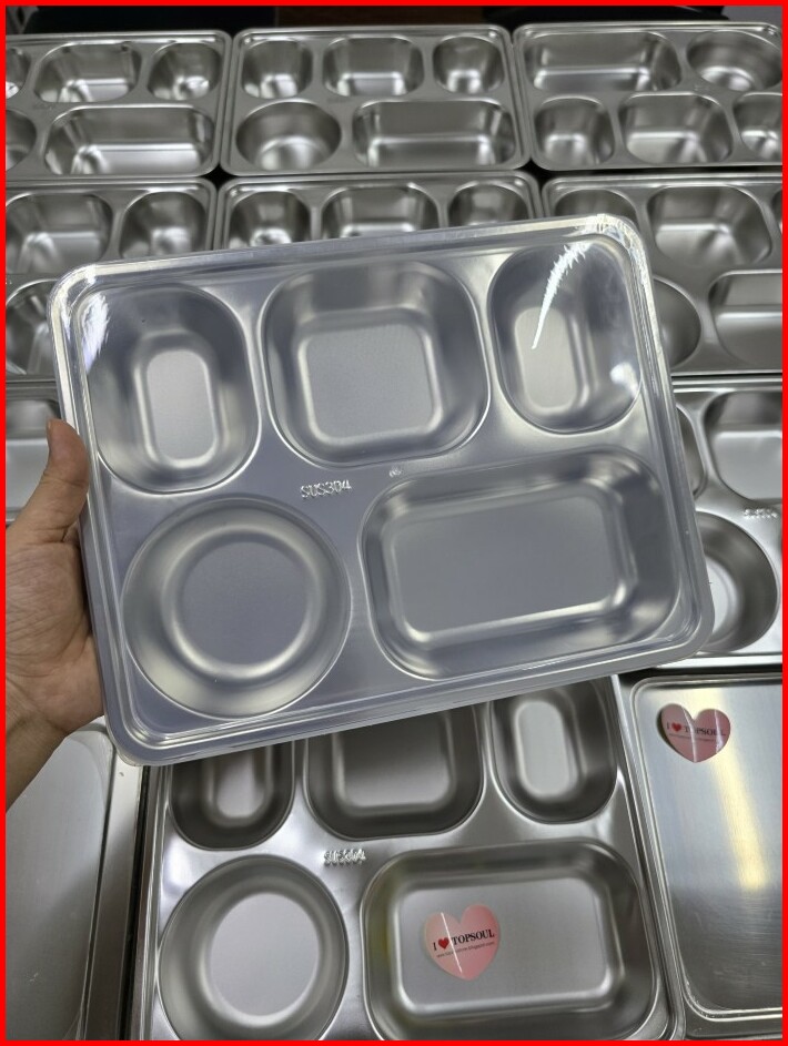 Piring Stainless Steel 5 Sekat Tutup Plastik Kotak Wadah Tempat Makan Nampan Catering Bento Lunch Box Saji Mestray Hospi