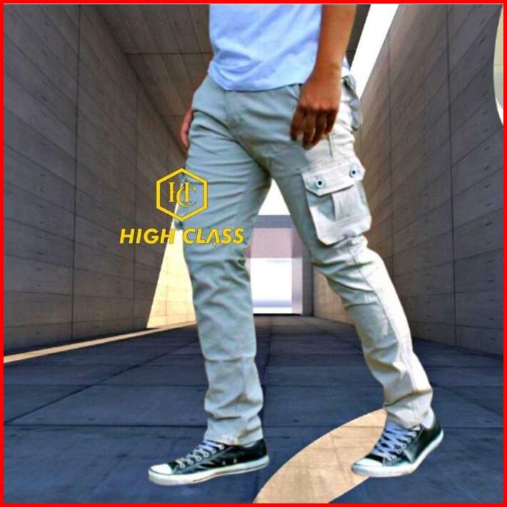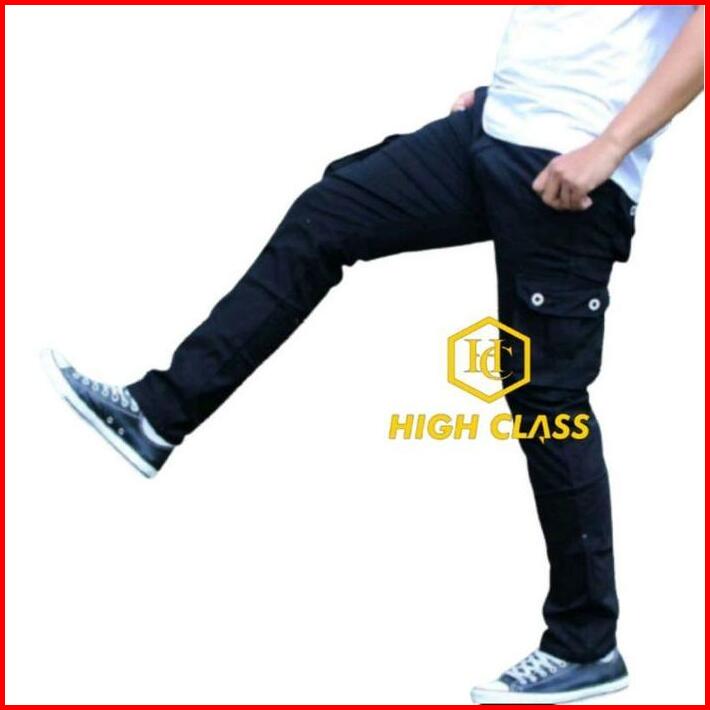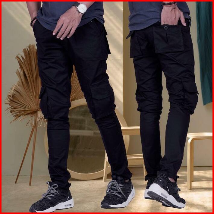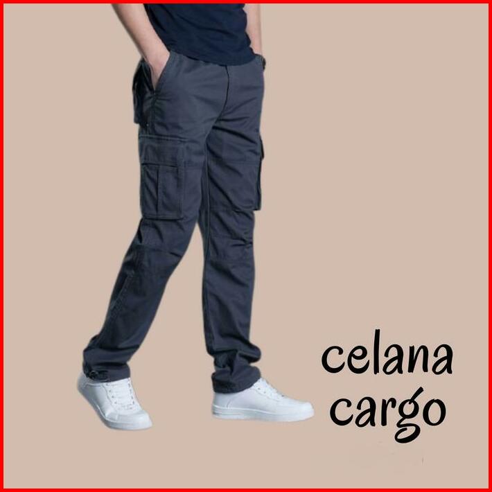 Celana Panjang Cargo Pria Size 24-44 Remaja Dewasa Jumbo Big Size Kain Tidak Melar Katun Hitam Fit Casual Slim Navy Bisa