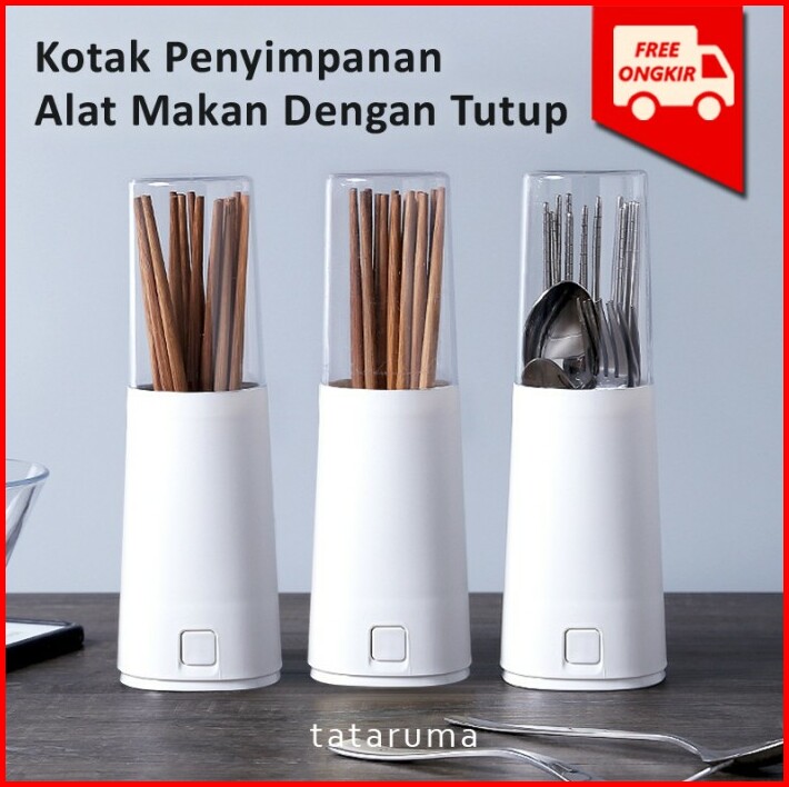 Chubu Kotak Tempat Penyimpanan Sendok Garpu Sumpit Alat Makan Estetik Dengan Tutup