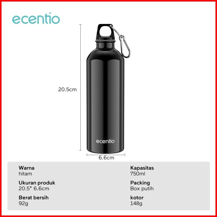 Ecentio 750ml Botol Minum Olahraga Cangkir Air Olahraga Aluminium