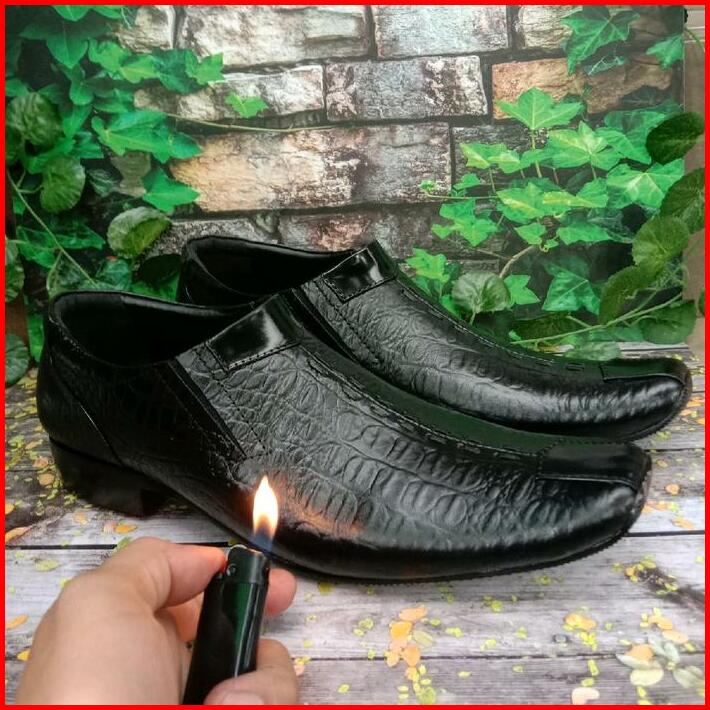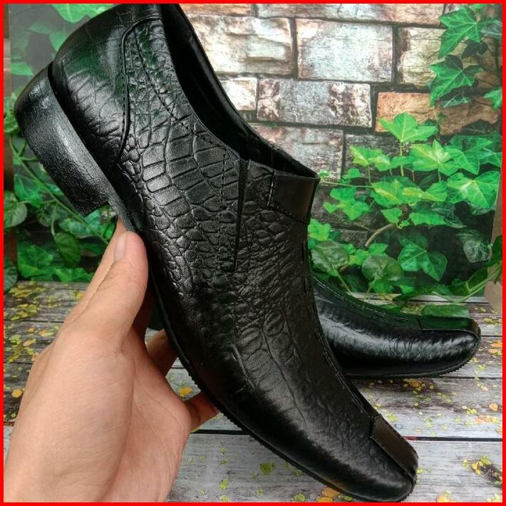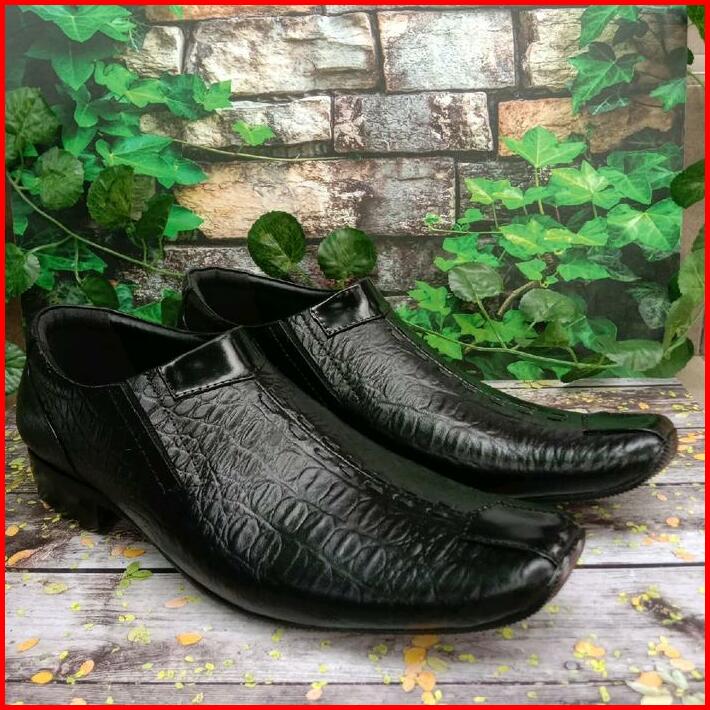 Sepatu Kulit Pria Pantofel Formal Kantor Motif Kulit Buaya Untuk Kerja Sekolah Pernikahan Pointed Toe Musim Panas Musim