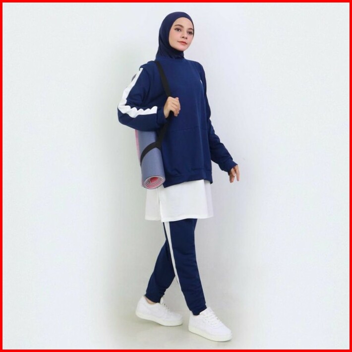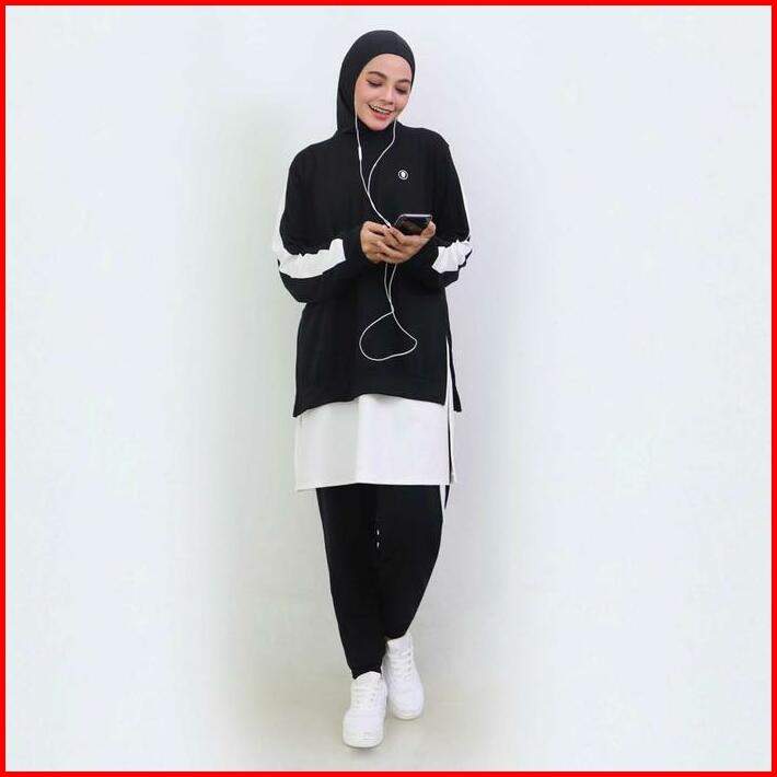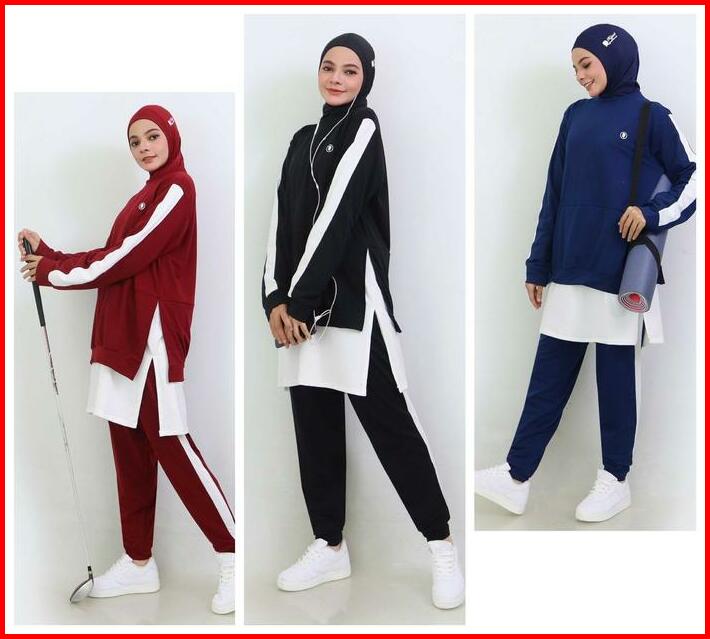 Setelan Olahraga Wanita Tunik Celana Gowes Senam Jogging 9-0263 Muslim Panjang Atasan Dewasa Baju