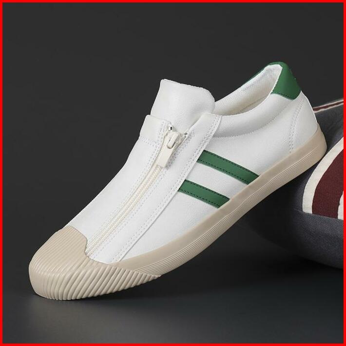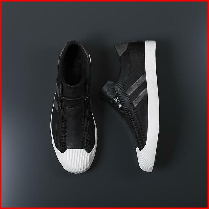 Prelesty Korea Sekolah Kantor Kuliah Sepatu Pantofel Slip On Kulit Ritsleting Pria Kerja Santai Cowok Semi Formal Tanpa