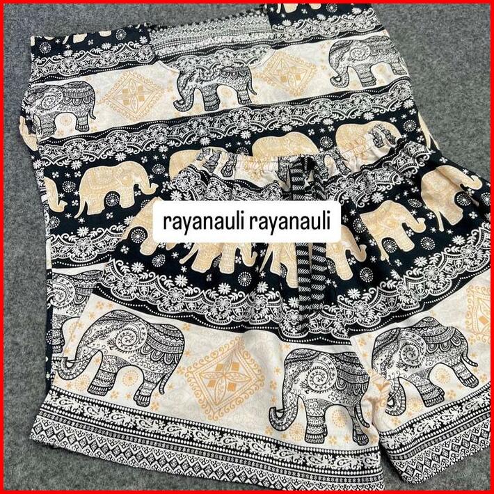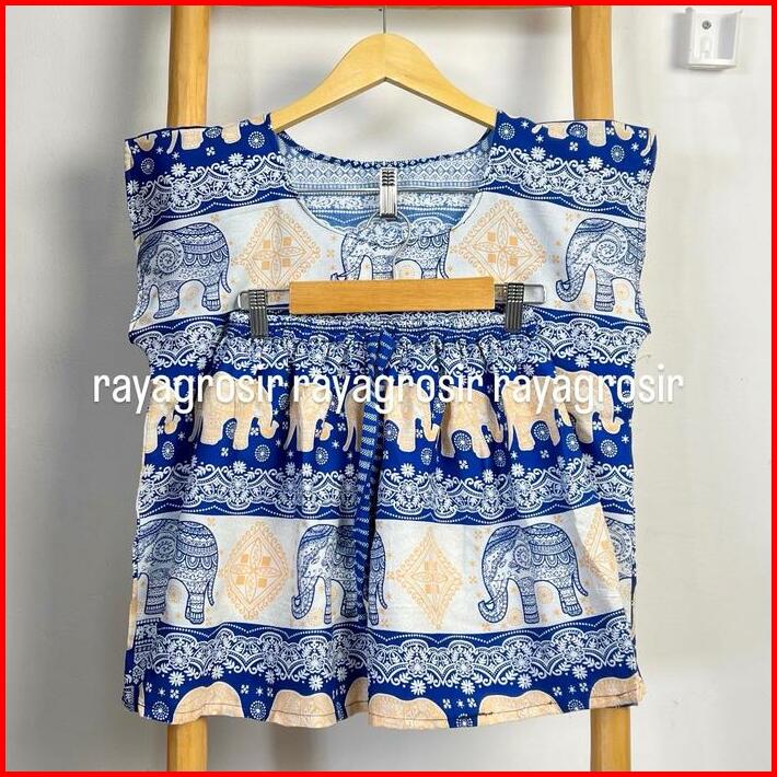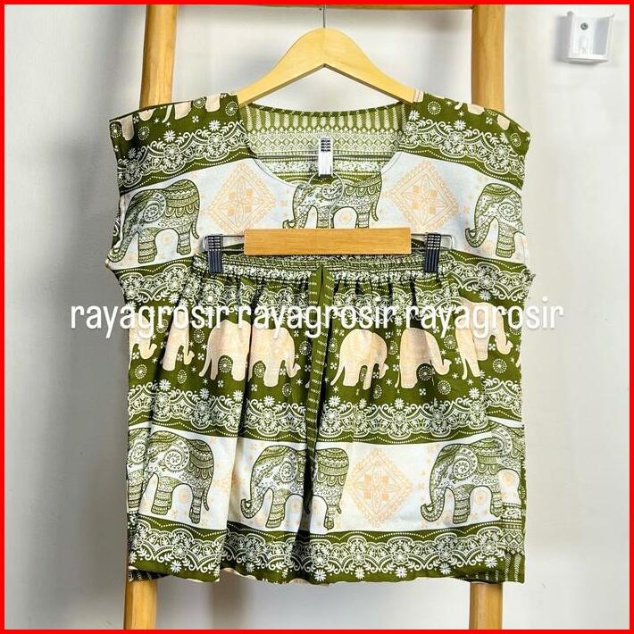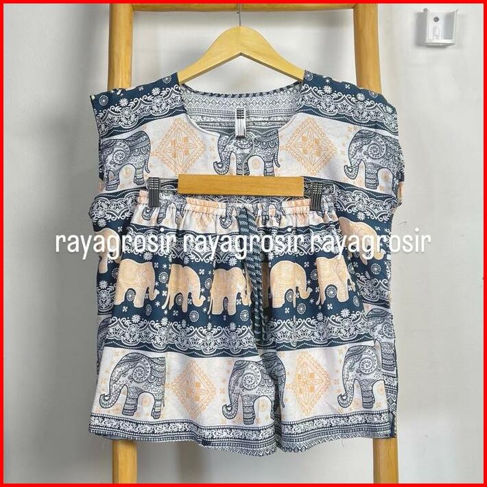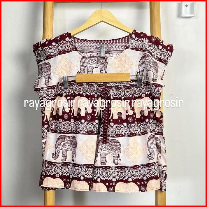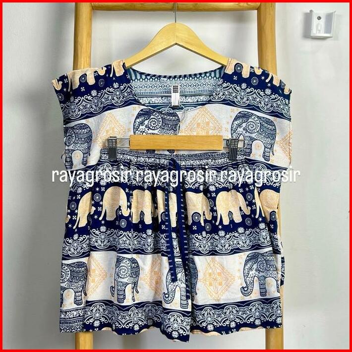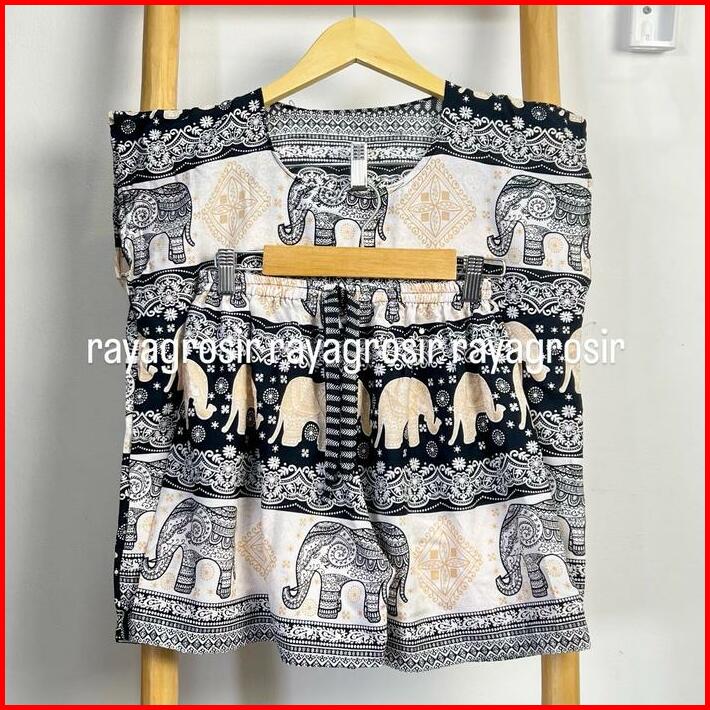 Setelan Baju Tidur Motif Gajah Babydoll Pendek Wanita Jumbo Rayon Bali