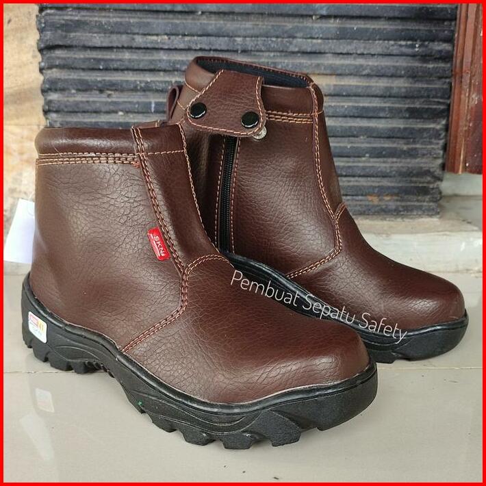 Sepatu Safety Resleting Terbaru Ujung Besi Sepatu Touring Hiking Kantor Pabrik Proyek Kualitas Mahal Resleting Semi Boot