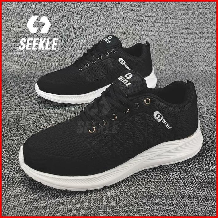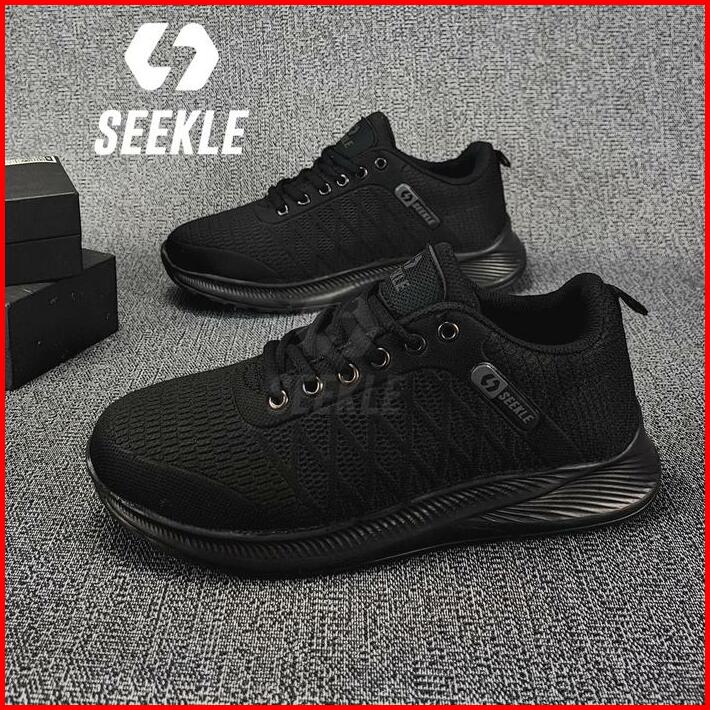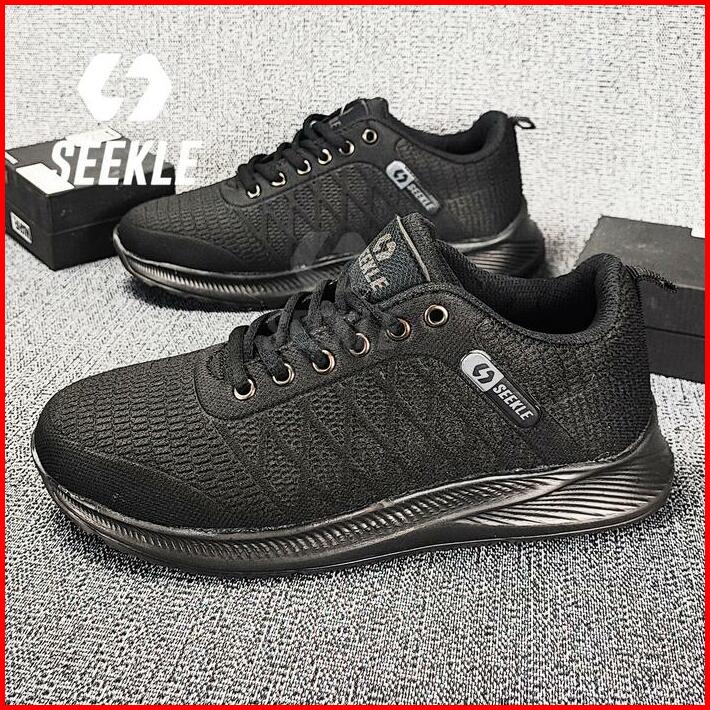Seekle Sepatu Olahraga Pria Wanita Nyaman Dan Ringan Casual Shoes Sneakers Kasual Sport Running Kerja Hitam Black Sneker