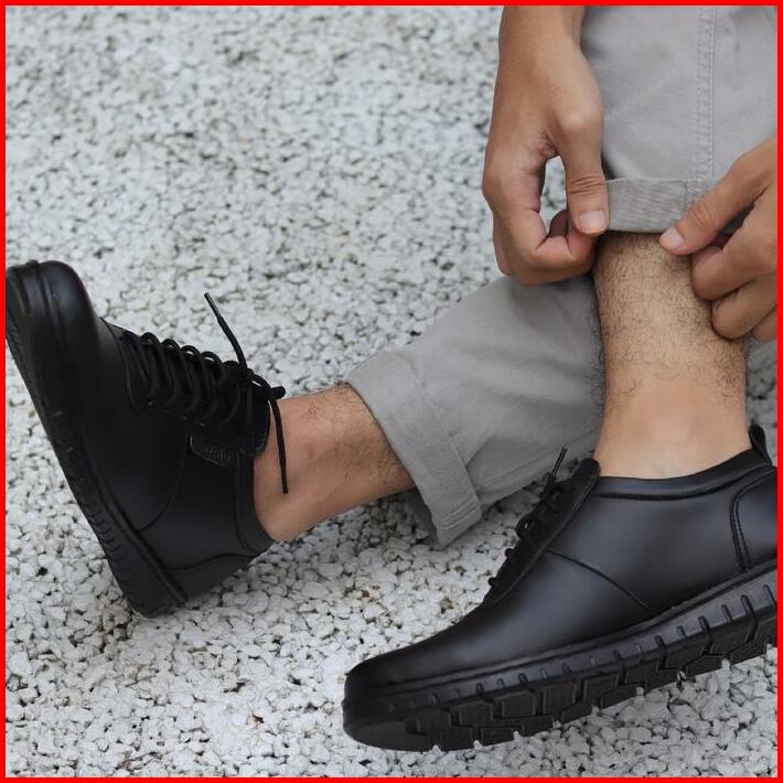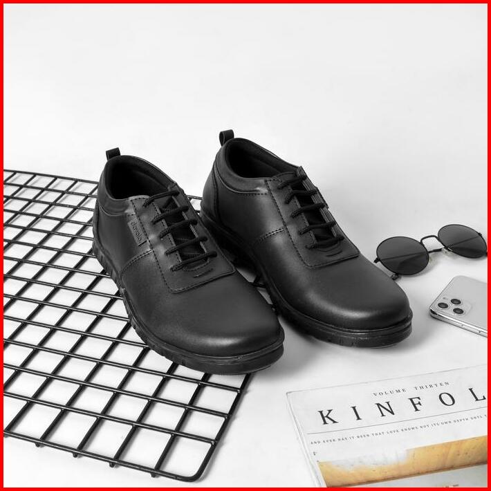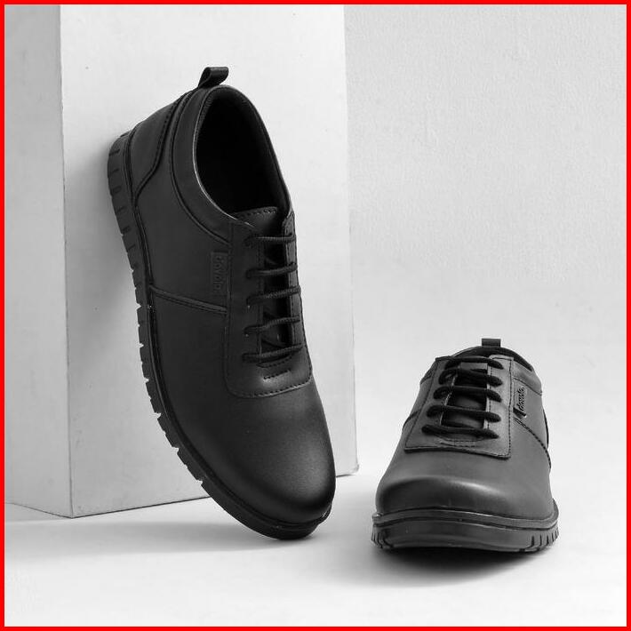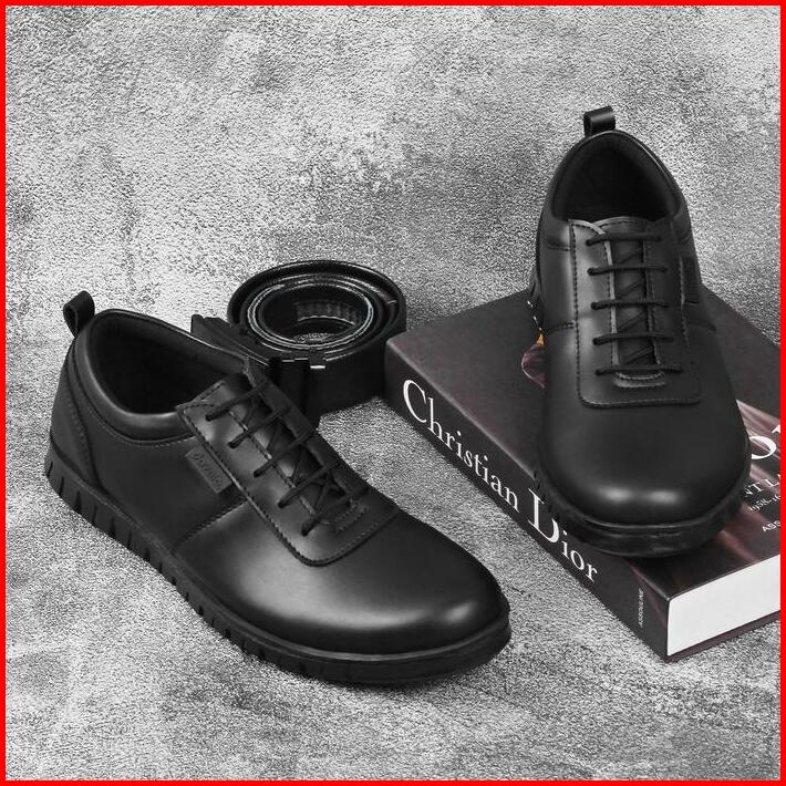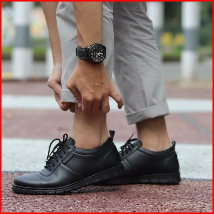 Sepatu Pantofel Pria Formal Casual Santai Kerja Kantor D098 Hitam Tanpa Hak Fantofel Shoes