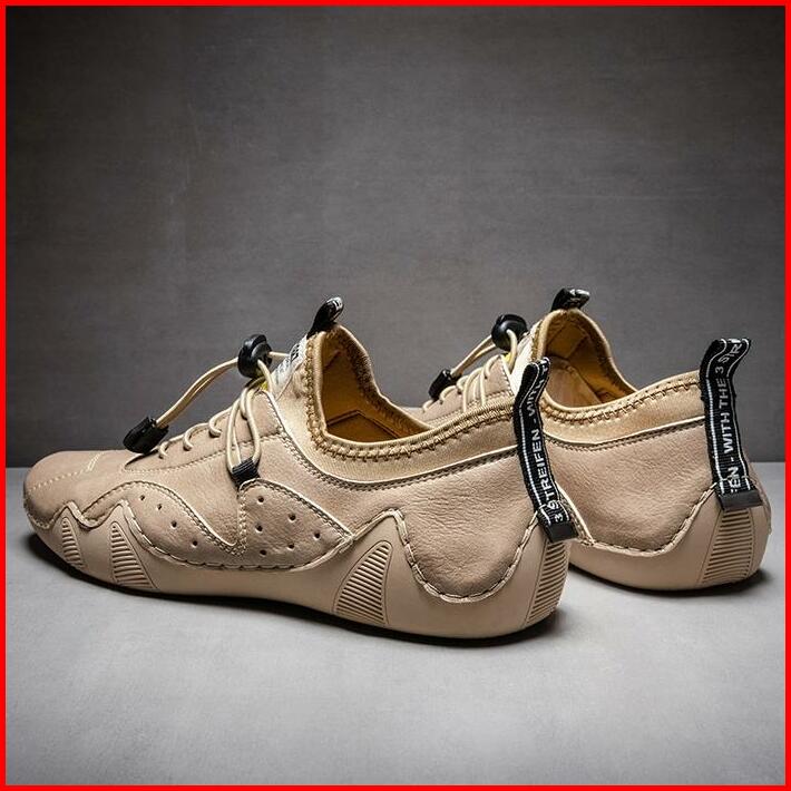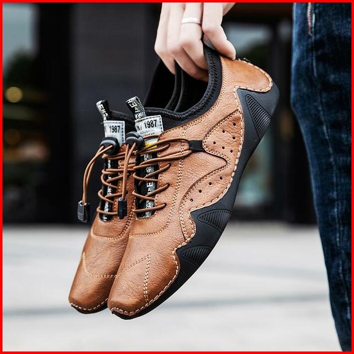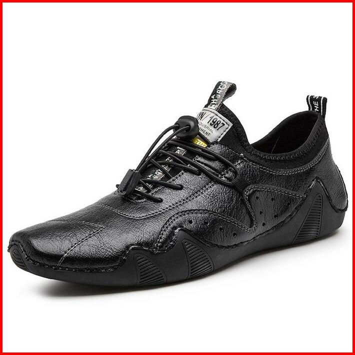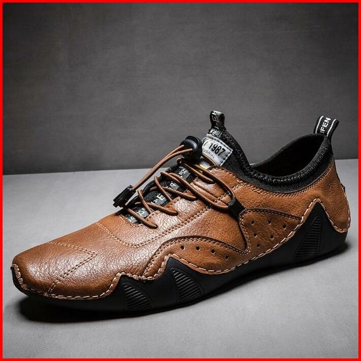 Prelesty 100 Kulit Asli Sepatu Pantofel Pria Formal Tali Handmade Loafer Olahraga Kantor Cowok Dewasa Lentur Ringan 087