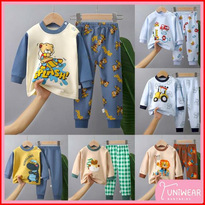 Uniwear Baju Tidur Anak Lengan Panjang Usia 1-6 Tahun Bahan Katun Setelan Bayi Laki Laki