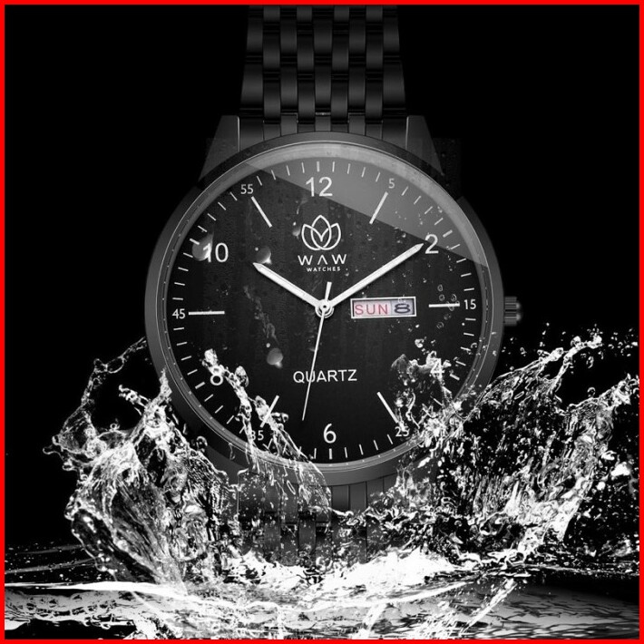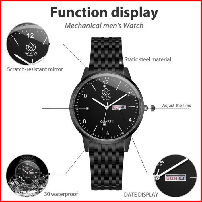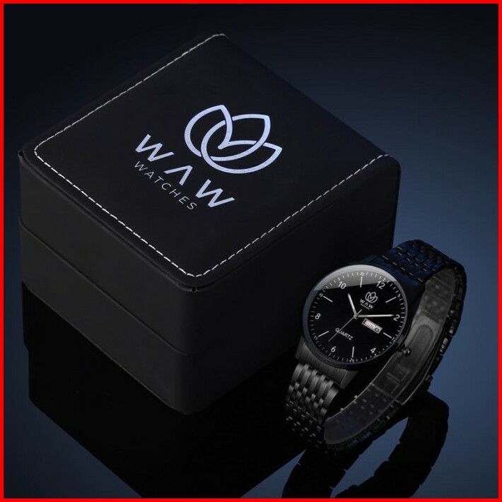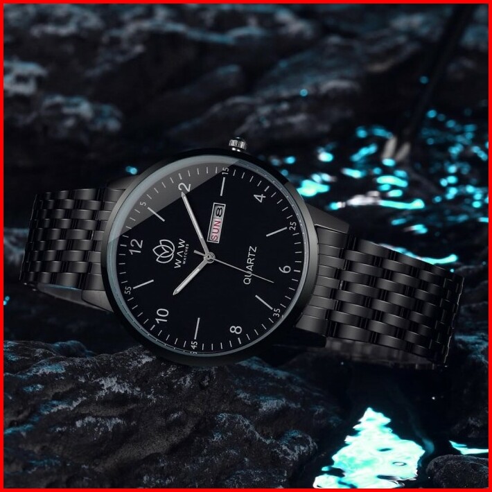 Waw Jam Tangan Pria Stainless Steel Hitam Anti Air Free Box Bubble