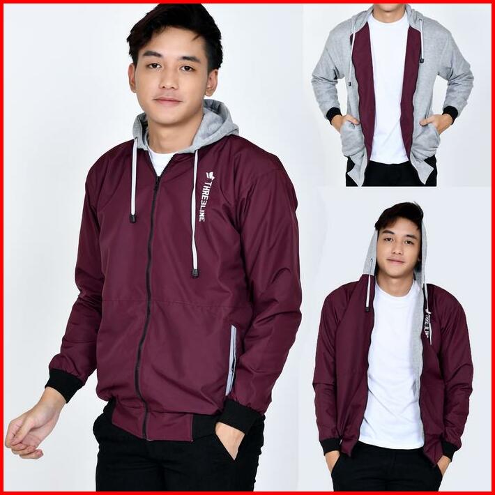 Jaket Bomber Hoodie Pria Dan Wanita Threeline Bisa Dipakai Bolak-balik Parasut