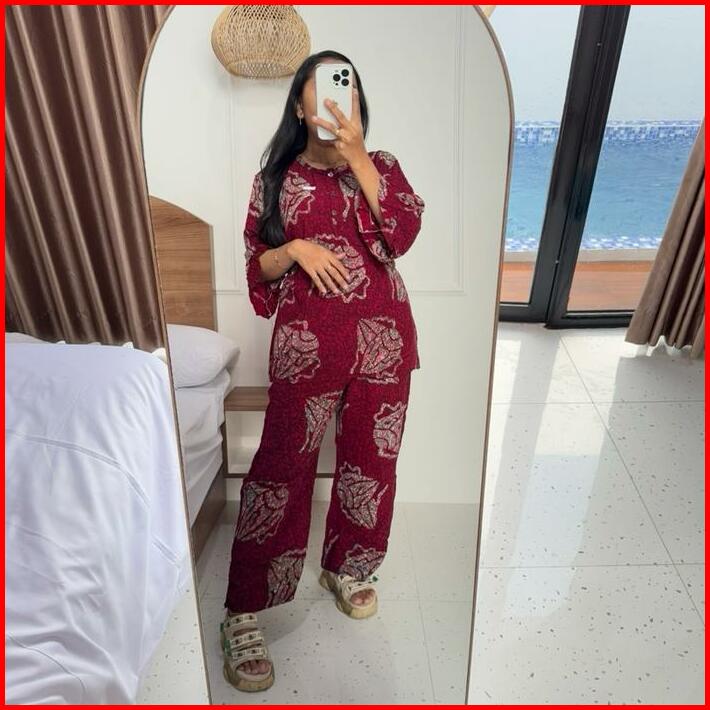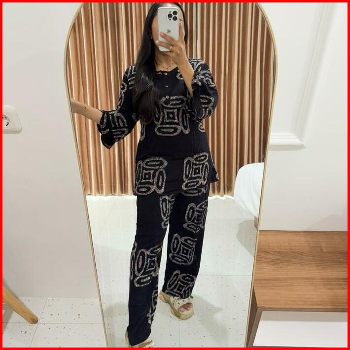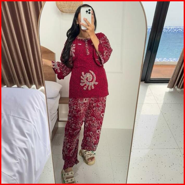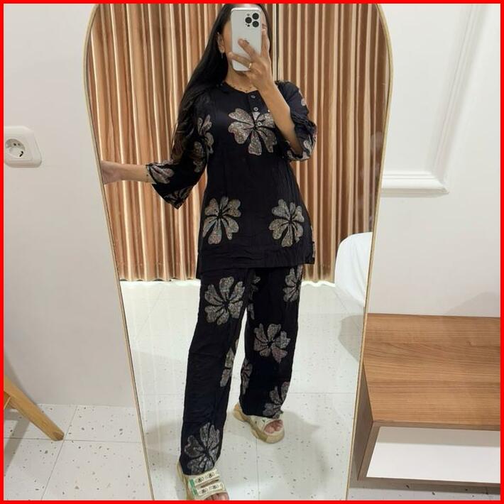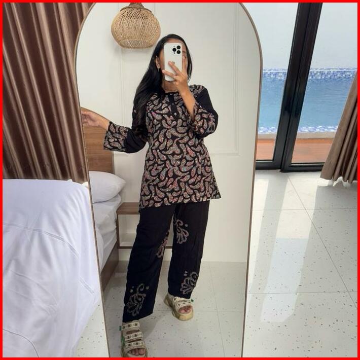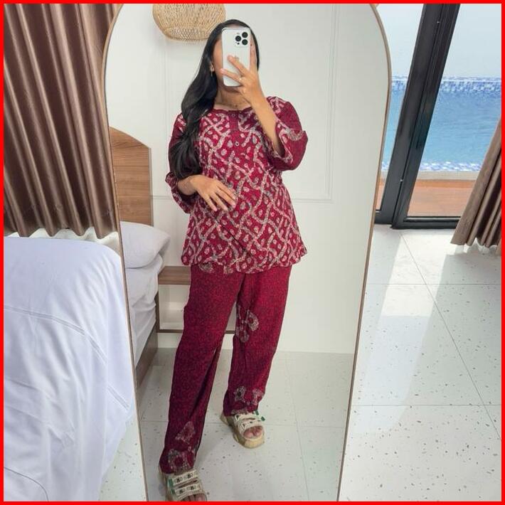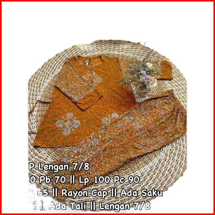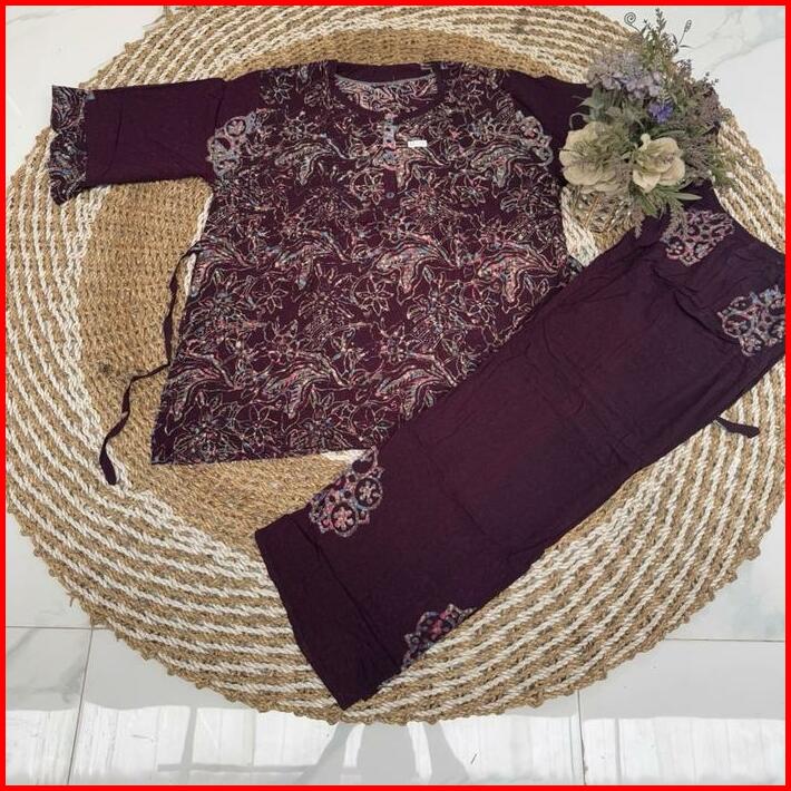 Setelan Cp Rainbow Lengan 7 8 Ld 110 Saqueena Batik Baju Celana Motif Variasi Wanita Panjang Biru Atasan Kulot Linen Top