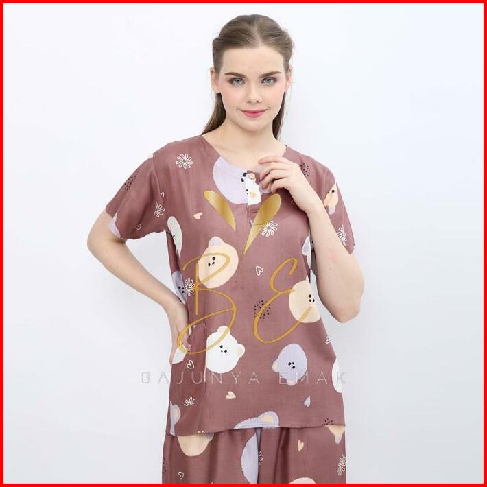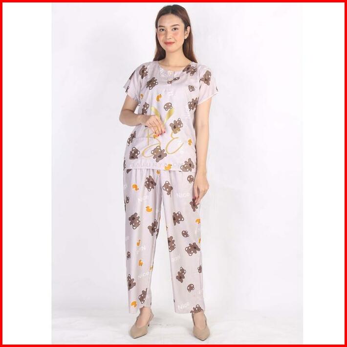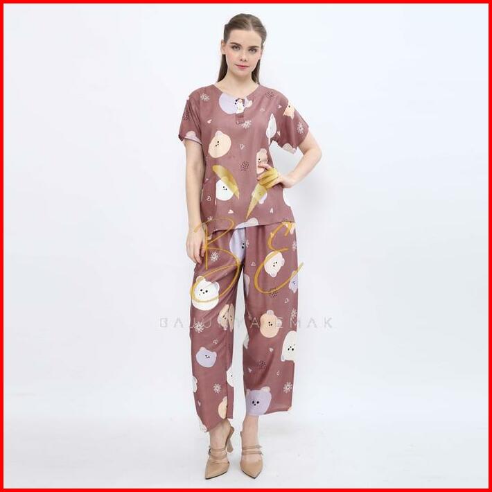 Setelan One Set Wanita Celana Panjang Setelan Baju Tidur Wanita Kancing Aktif Motif Bear Dan Autum Bahan Rayon Bajunya E