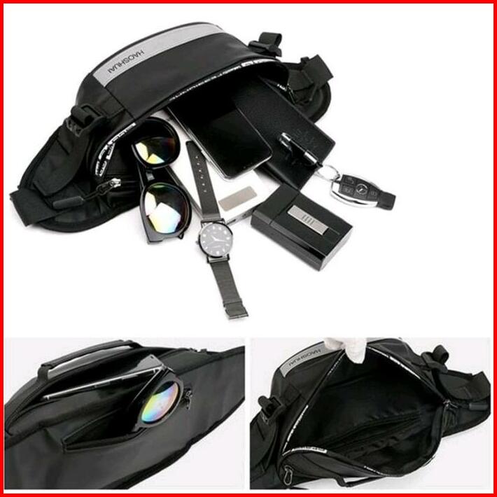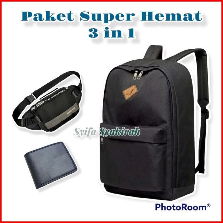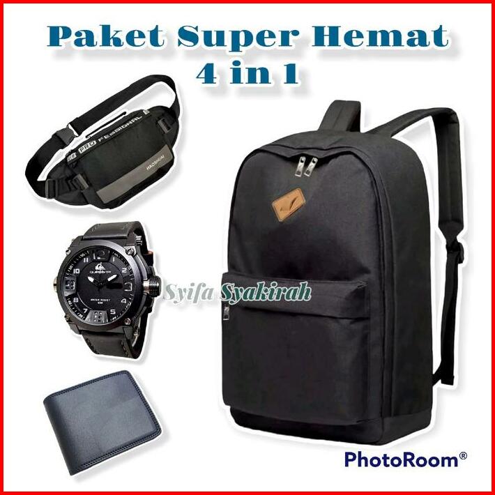 Paket Super Hemat 4 In 1 Tas Ransel Waistbag Jam Tangan Kasual Tali Semi Kulit Dompet Pria Tas Gendong Pria Wanita Kasua