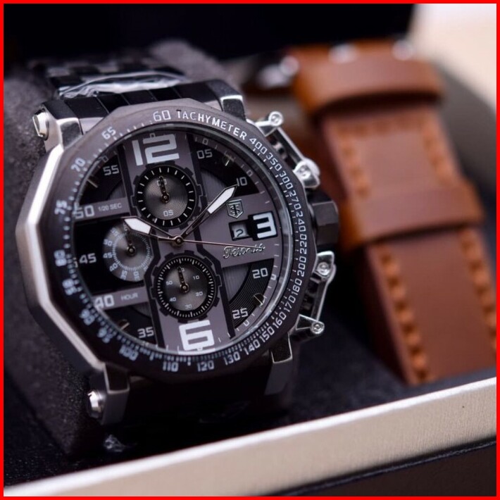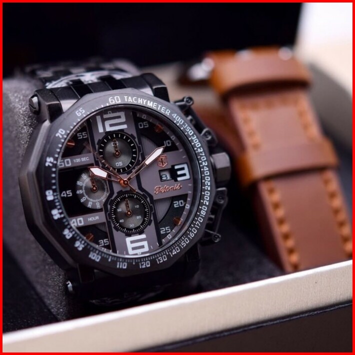Jam Tangan Pria Tetonis Rantai 6012 Original Bonus Kulit
