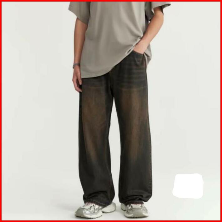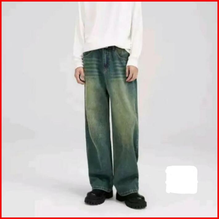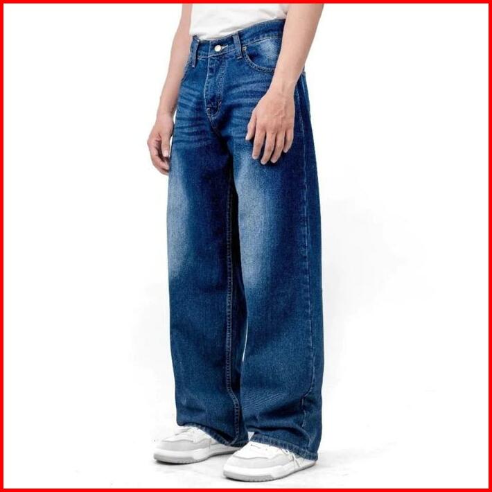 Celana Gombrong Skena Y2k Jeans Wide Leg Wisker Lebar Hitam Pria Wanita Unisex Loose Fit Jumbo Big Keren
