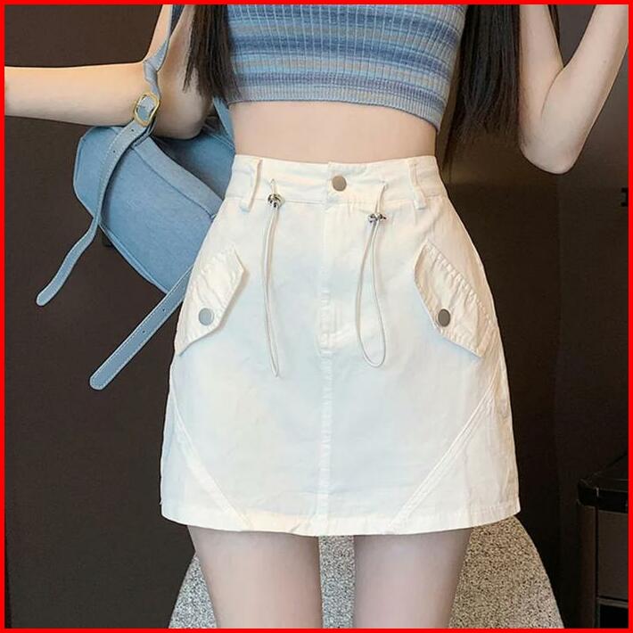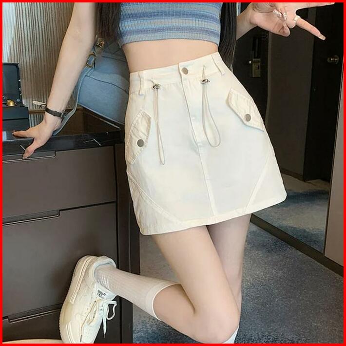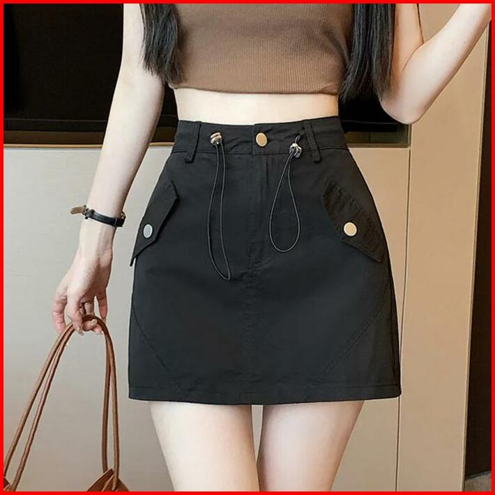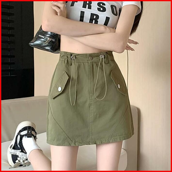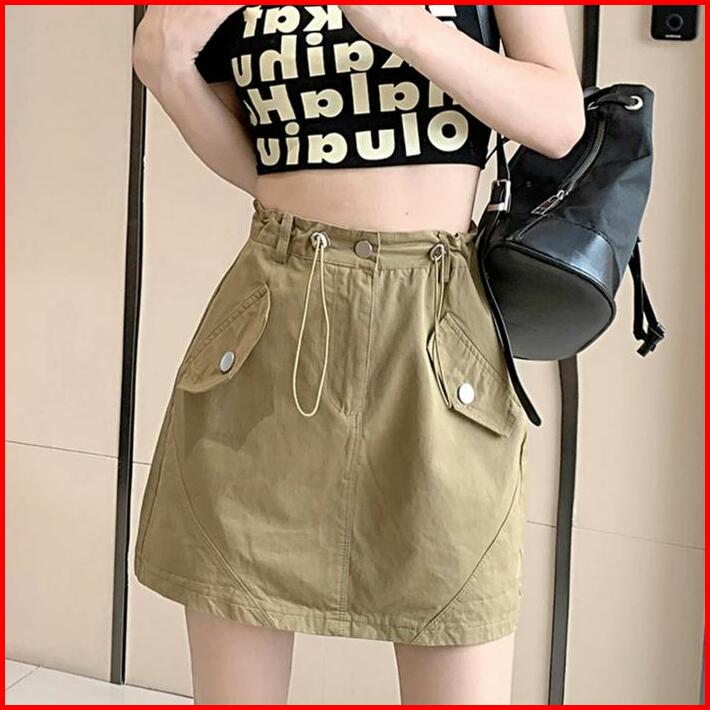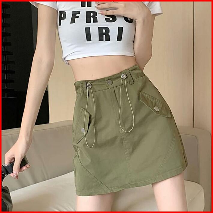 Zoki Rok Kargo Tali Wanita Rok Mini High Waist Korean Style Karet Casual Cewek Dewasa Rok Cargo Pendek Santai Androk Kor