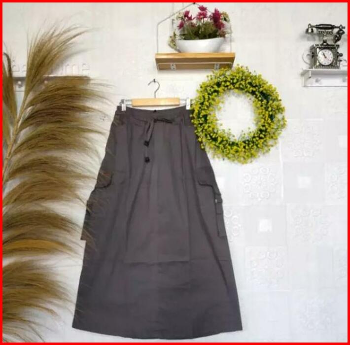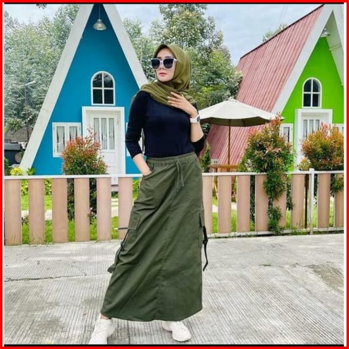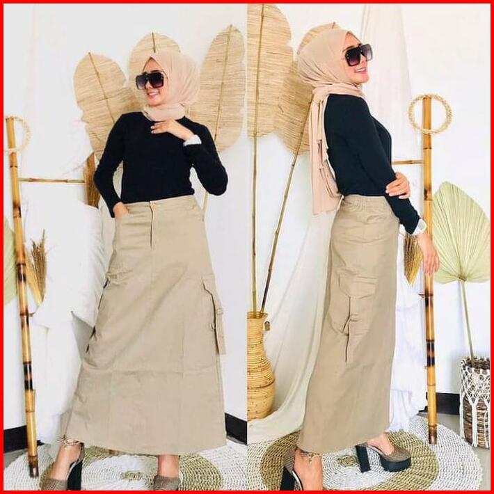 Rok Span Chinos Cargo Wanita Jumbo Rok Cargo Dewasa Terbaru Rok Cargo Panjang Wanita Jumbo Polos Santai Katun Muslim Teb