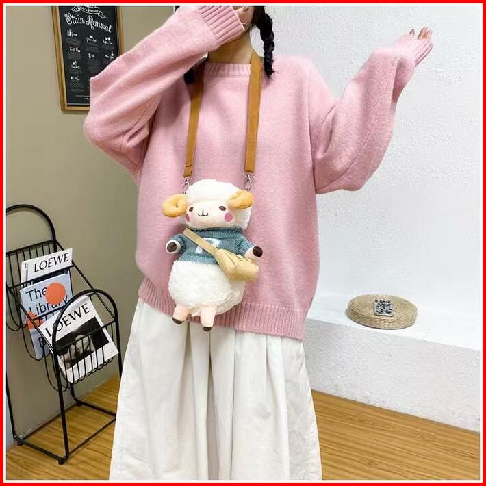 Tas Domba Sweater Selempang Sling Bag Fashion Motif Kartun Karakter Hewan Anak Dewasa Bulu Lucu Wanita Remaja Boneka Ana