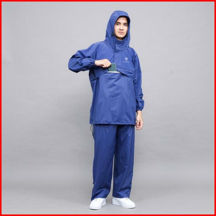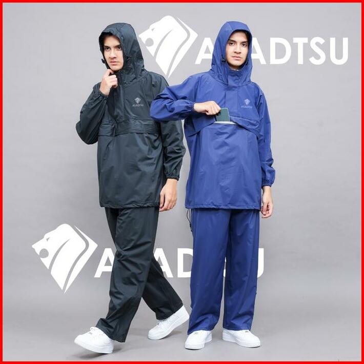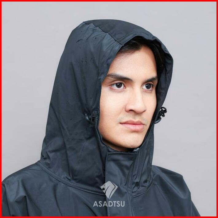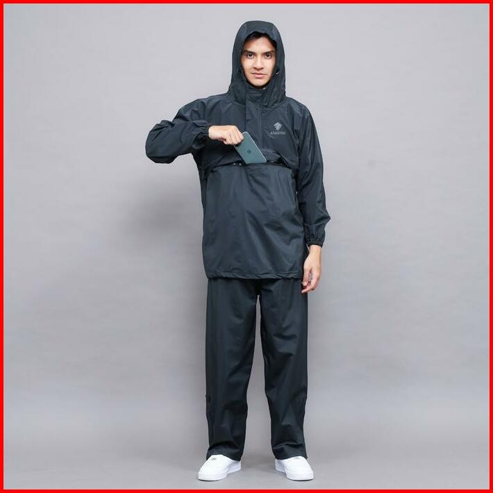 Asadtsu Jas Hujan Saku Kangguru Bahan Tebal Setelan Dewasa Pria Wanita Hijau Merah Zipper