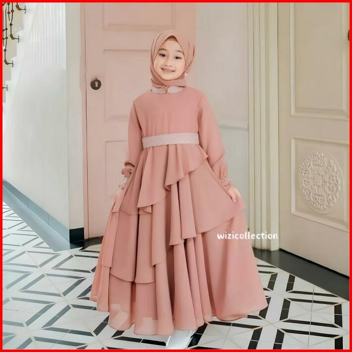 Mikayla Kids Set Pashmina Gamis Anak Usia 5-12 Tahun Gamis Anak Terlaris Terbaru Bahan Ceruty Baju Muslim Nyaman Panjang